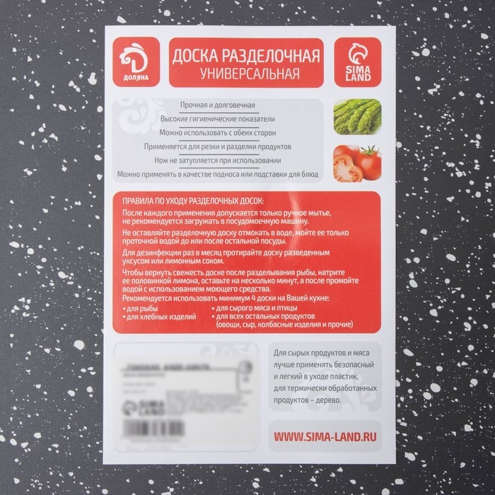 - Подойдет для разделки рыбы, мяса курицы или говядины, шашлыка, овощей, хлеба, теста, фруктов, продуктов, нарезок сыра и колбасы, картофеля, картошки.