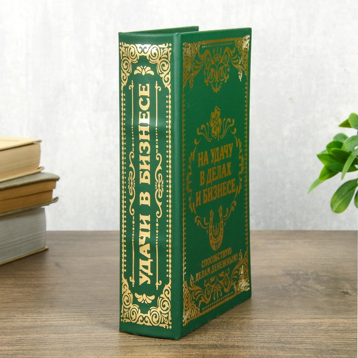 Сейф дерево книга кожа тиснение "На удачу в делах и бизнесе" 21х13х5см