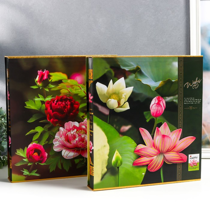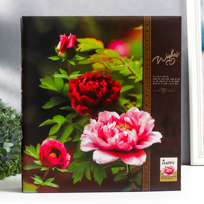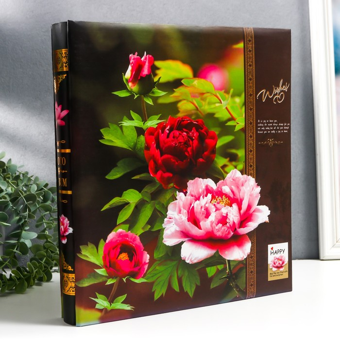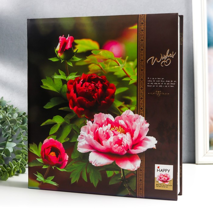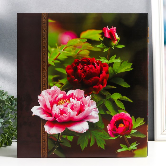 Фотоальбом на 500 фото 10х15 см "Пионы" золот.обв,объем.эл, в коробке МИКС 33,5х30,5х5,7 см