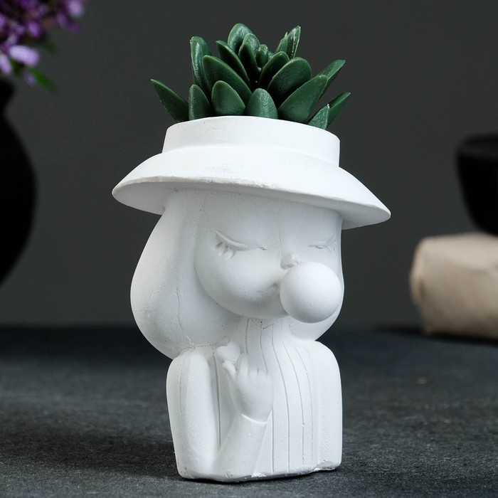 Кашпо - органайзер "Девочка с жвачкой" белая 9х11х9см