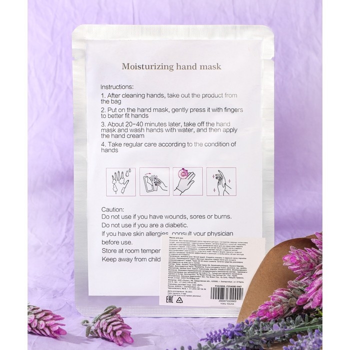 Маска-перчатки для рук, питательная, омолаживающая, с экстрактом лаванды