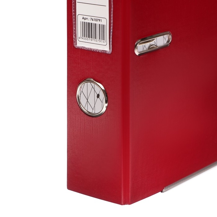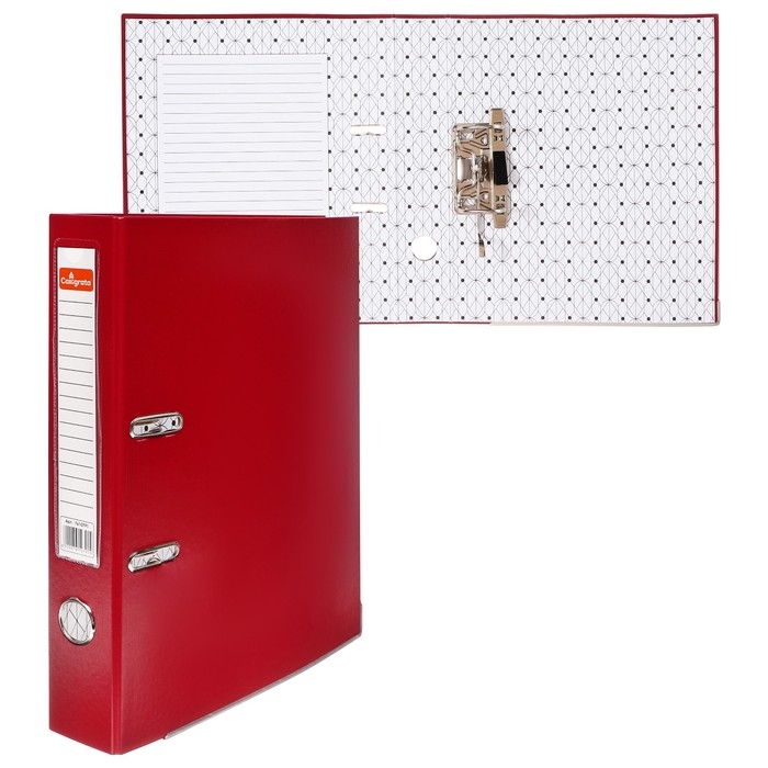 Папка-регистратор А4, 75 мм, Calligrata, ПВХ, тиснение "лен", металлическая окантовка, карман на корешок, собранная, красная, микс
