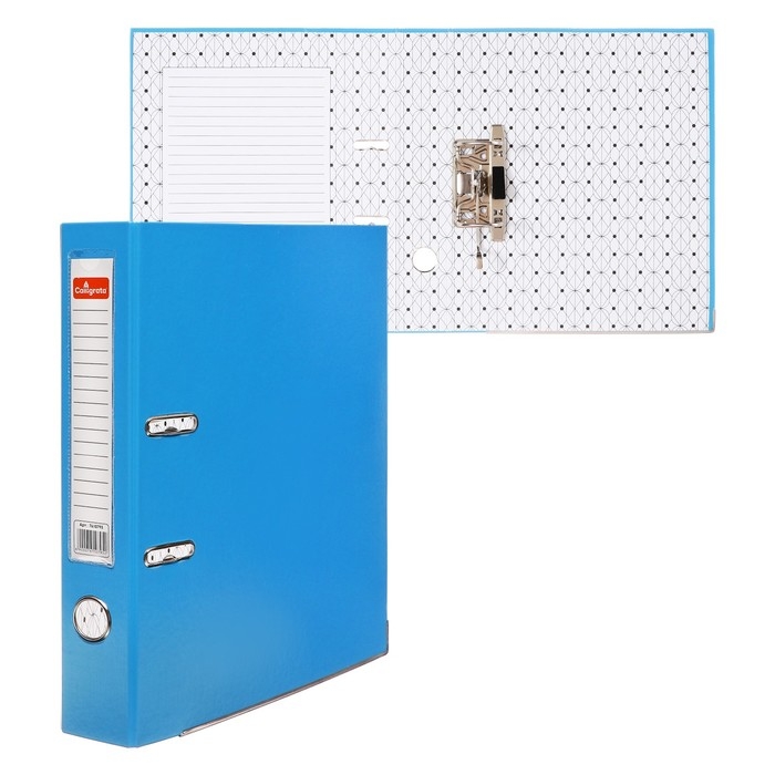 Папка-регистратор Calligrata с арочным механизмом изготовлена из плотного картона, с внешней стороны заламинированного полипропиленовой пленкой (РР) с текстурой "лен", внутри оклеена бумагой с алфавитно-цифровым полем для классификации на левой стороне.