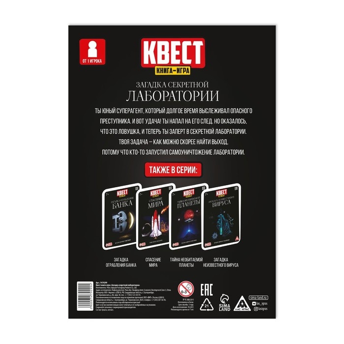 Квест книга-игра «Загадка секретной лаборатории», 22 страницы, 7+