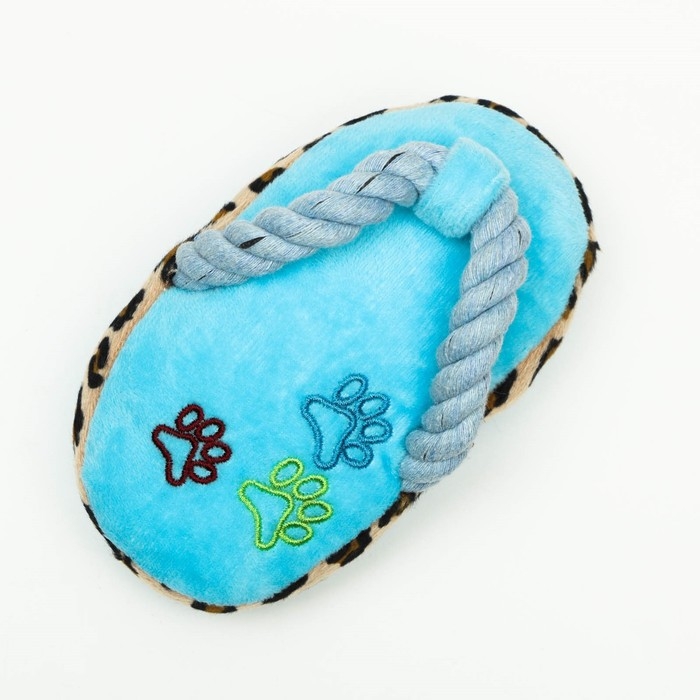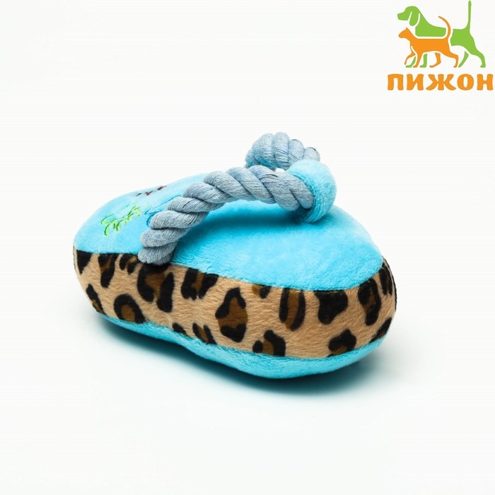 Игрушка мягкая для собак "Тапок с канатом", с пищалкой, 15 см, голубая