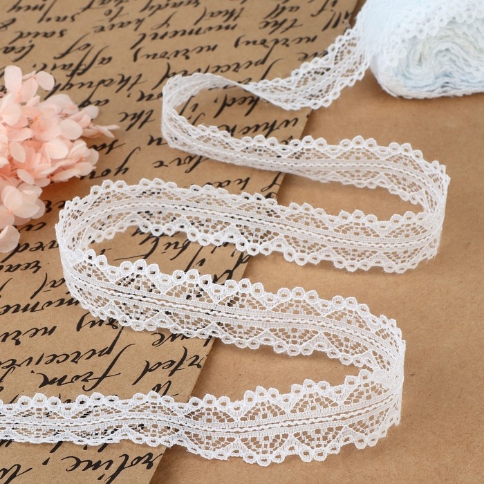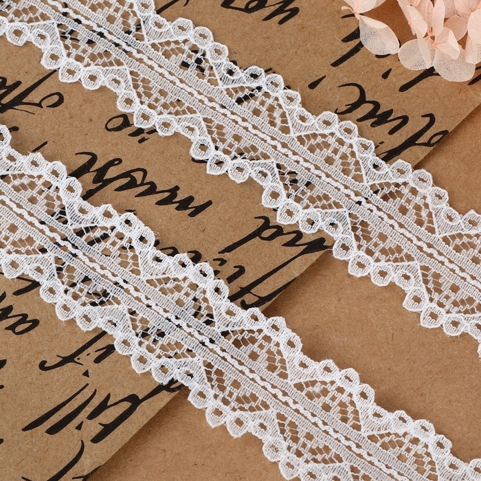 Кружево капроновое, 25 мм × 10 ± 1 м, цвет белый