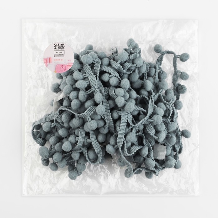 Тесьма декоративная с помпонами, 25 ± 5 мм, 8 ± 0,5 м, цвет серый