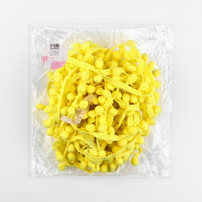 Тесьма декоративная с помпонами, 25 ± 5 мм, 9,1 ± 0,5 м, цвет жёлтый