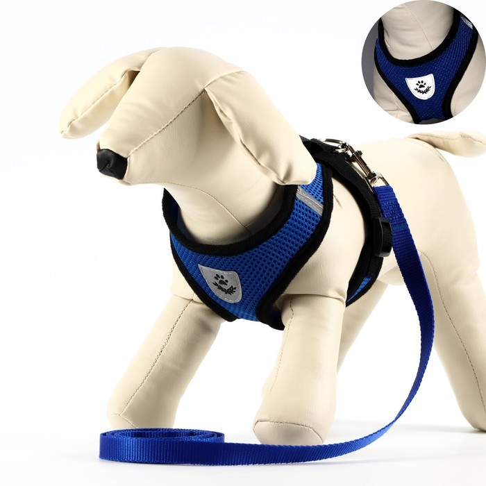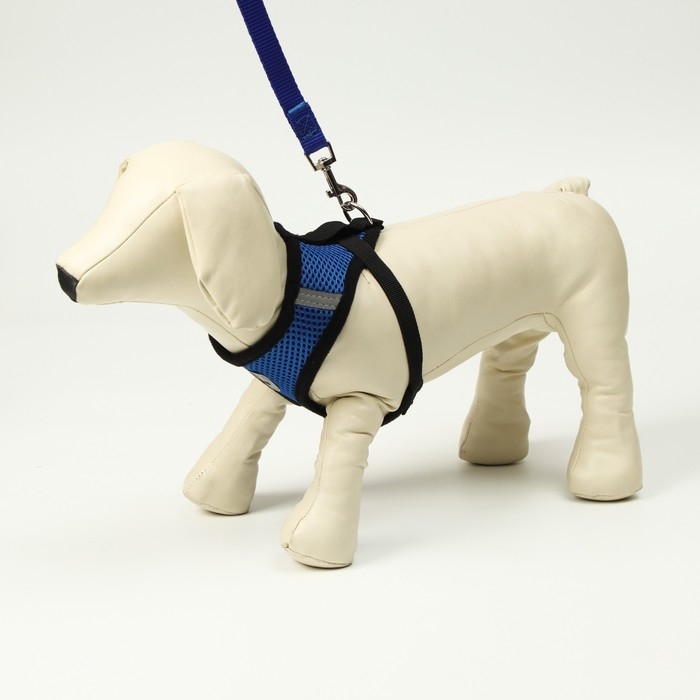 Комплект амуниции с мягкой шлейкой и светоотражающей нашивкой, L, ОШ 33 см, ОГ 36-48 см, синий 76143
