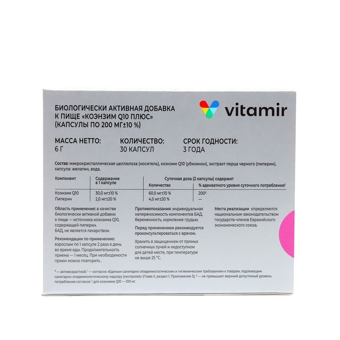 Коэнзим Q10 плюс ВИТАМИР, 30 капсул по 200 мг