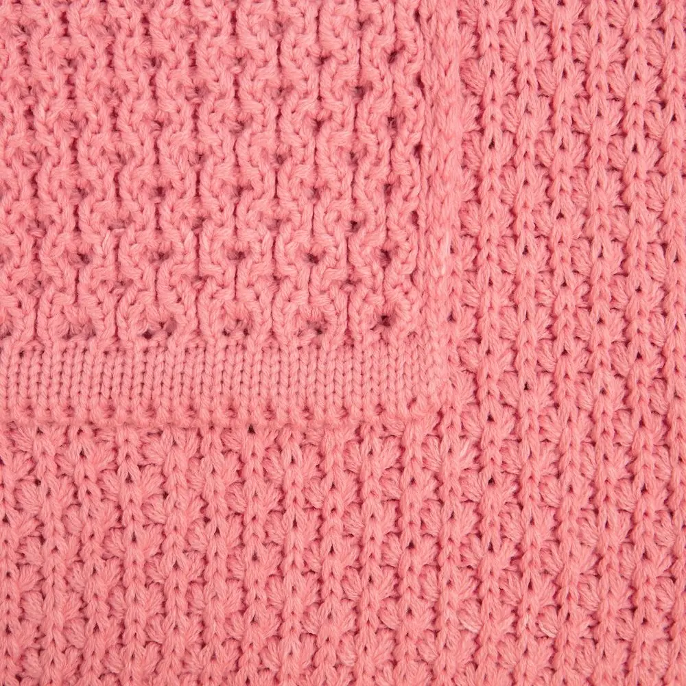 Модель: однотонный плед с фактурной вязкой, которая позволяет сделать его воздушным и объемным. Чередуя различные типы петель на гладком полотне, можно вывязать любую графику — логотип, текст, товарный знак.