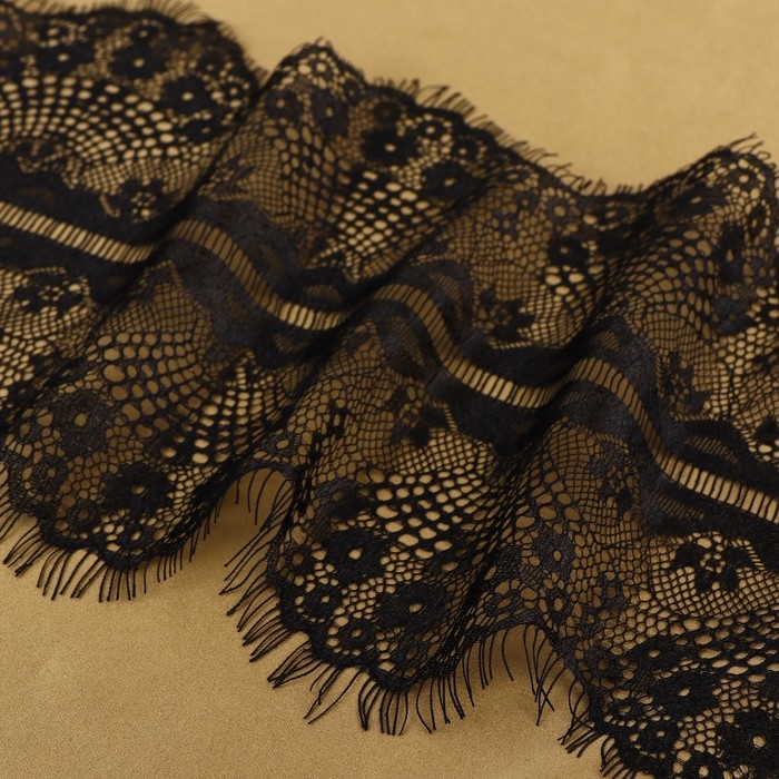 Кружево реснички, 190 мм × 3 ± 0,5 м, цвет чёрный