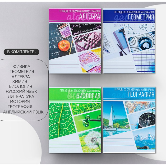 Комплект предметных тетрадей 48 листов "Коллаж", 10 предметов, со справочным материалом, обложка мелованный картон, блок офсет