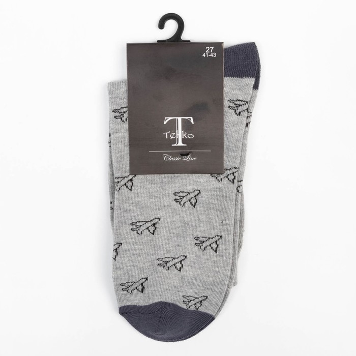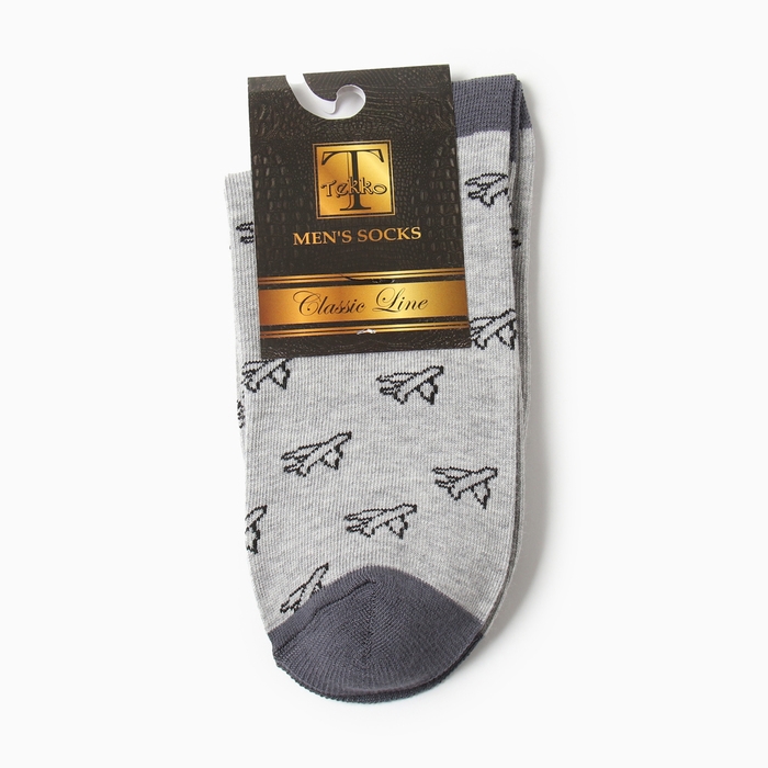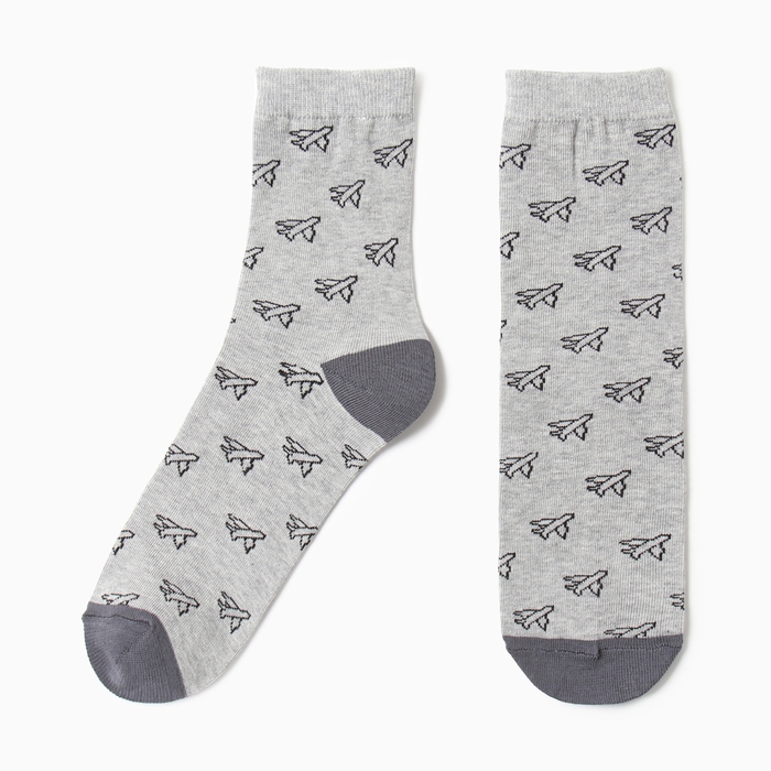 Носки мужские "Самолёты", цвет серый, размер 27