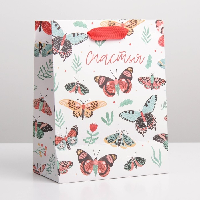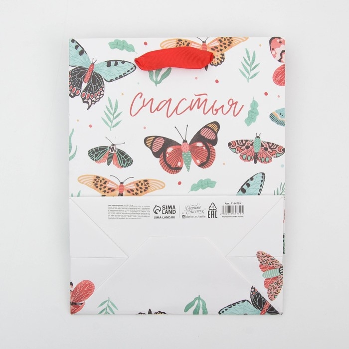 Пакет подарочный ламинированный вертикальный, упаковка, «Счастье», MS 18 х 23 х 10 см