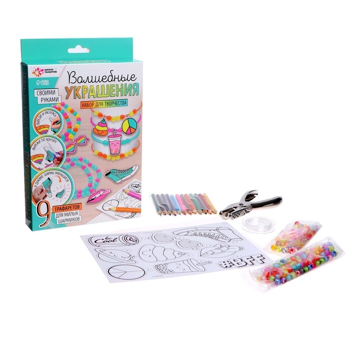 Набор для творчества «Волшебные украшения», сделай 9 шармов своими руками, с трафаретами, 6+