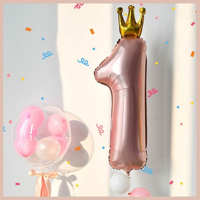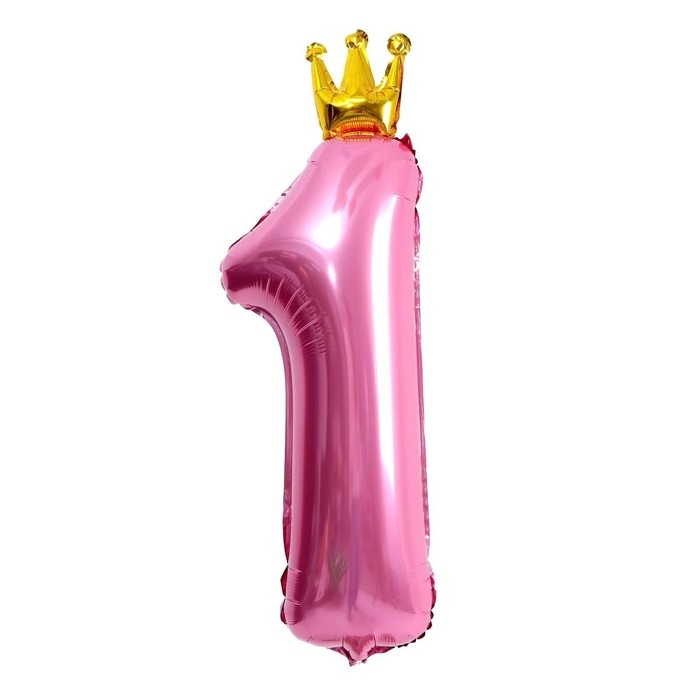 Шар фольгированный 32" «Цифра 1 с короной», цвет розовый