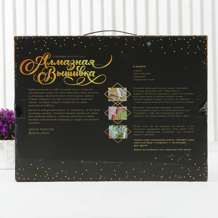 Алмазная вышивка с полным заполнением - это отличный способ провести вечер в творческой атмосфере. Готовое изделие украсит интерьер или станет оригинальным подарком.