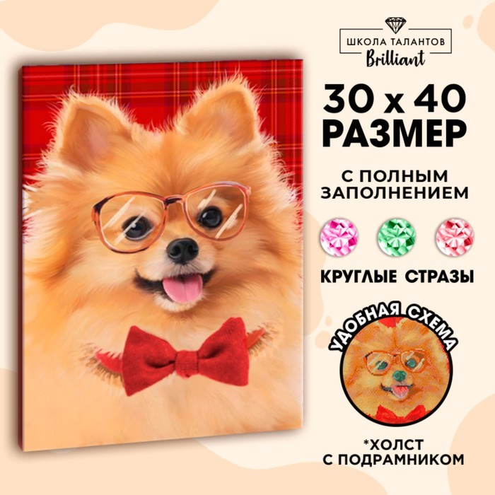 Алмазная мозаика с полным заполнением на подрамнике «Собачка», 30 х 40 см