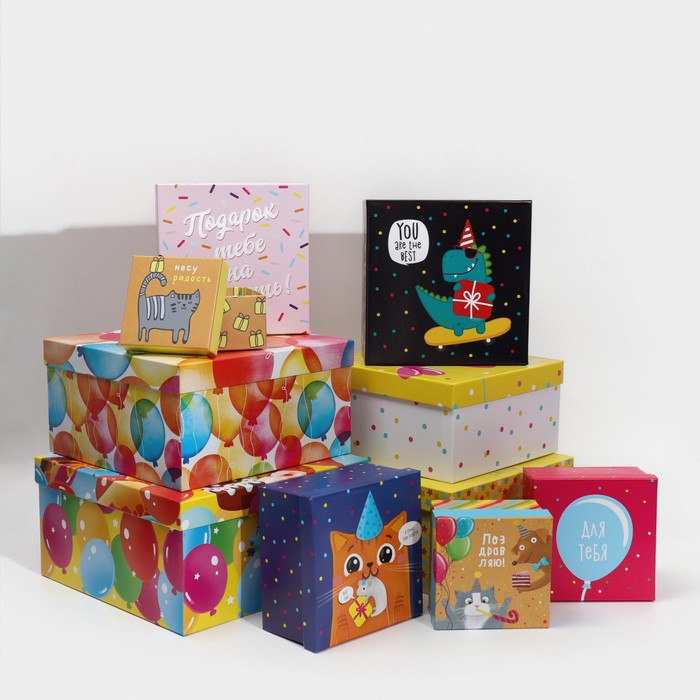 Набор коробок 10 в 1, упаковка подарочная, «Поздравления», 10.2 х 10.2 х 6‒28.2 х 28.2 х 15 см