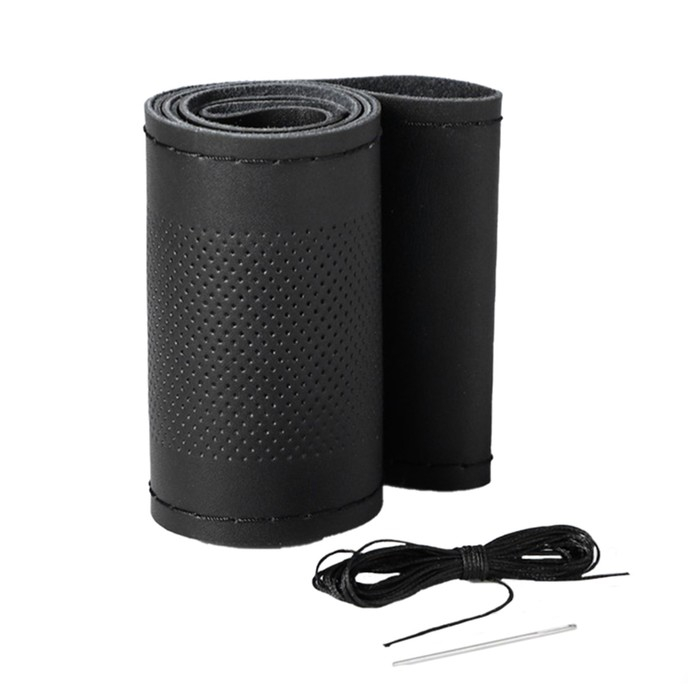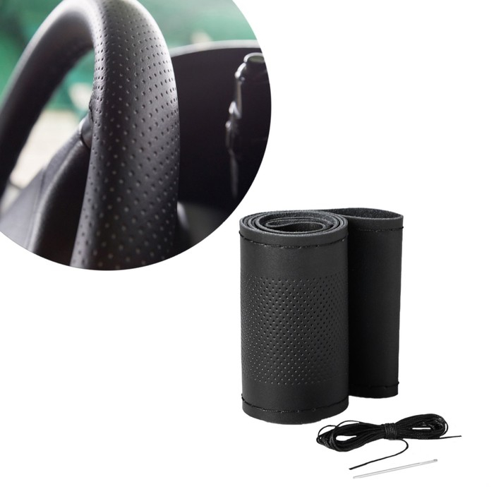 Оплетка на руль Cartage, 38 см, натуральная кожа с перфорацией, черный