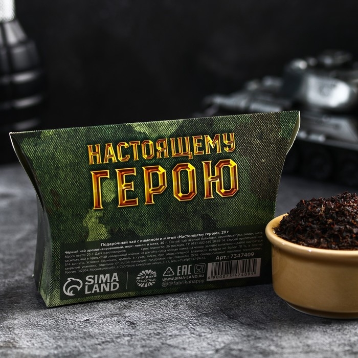 Чай чёрный «Настоящему герою» с лимоном и мятой, 20 г.