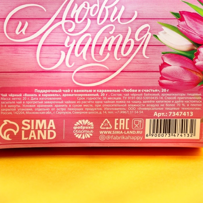 Чай чёрный «Любви и счастья» с ванилью и карамелью, 20 г.