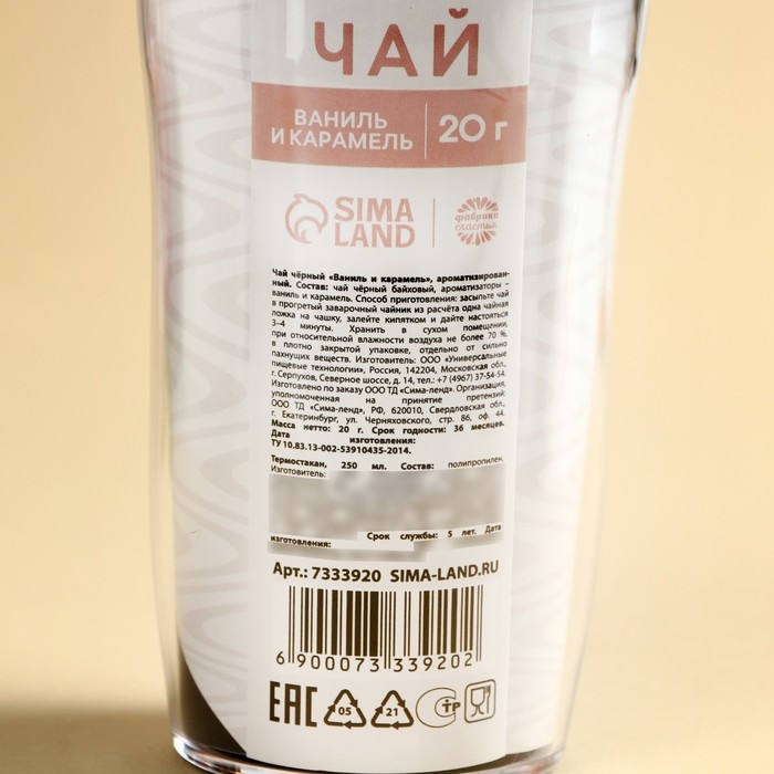 Чай чёрный «Мечтай, живи, твори» с ванилью и карамелью в термостакане 250 мл., 20 г. МИКС