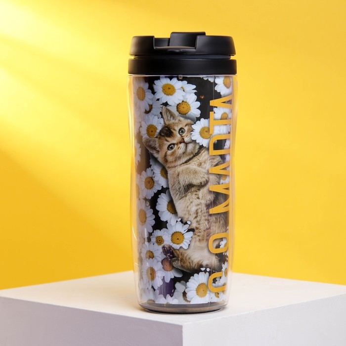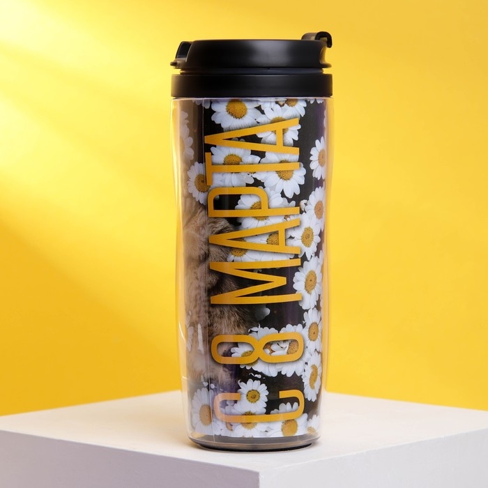 Термостакан со вставкой «Кот с 8 марта»: 350 мл