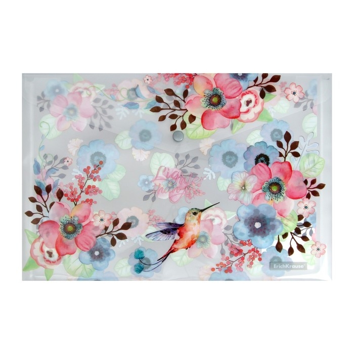 Папка-конверт на кнопке А4, 160 мкм, ErichKrause, Colibri, полупрозрачная, глянцевая, с принтом