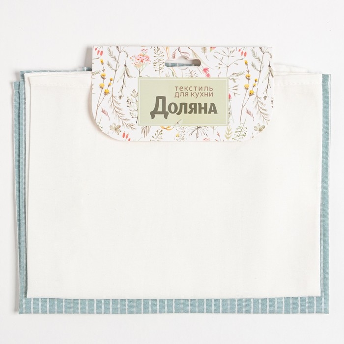 Набор кухонных полотенец Доляна «Полосы», 40х70см- 2шт, зеленый, 50%п/э, 50%хл