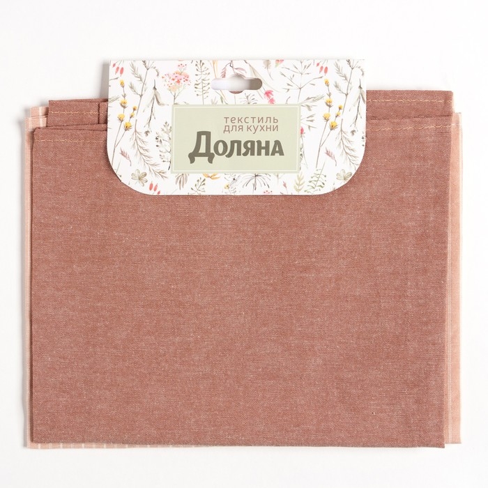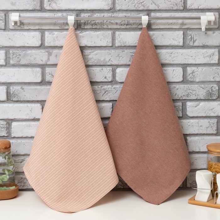 Набор кухонных полотенец Доляна «Полосы», 40х70см- 2шт, бежевый, 50%п/э, 50%хл