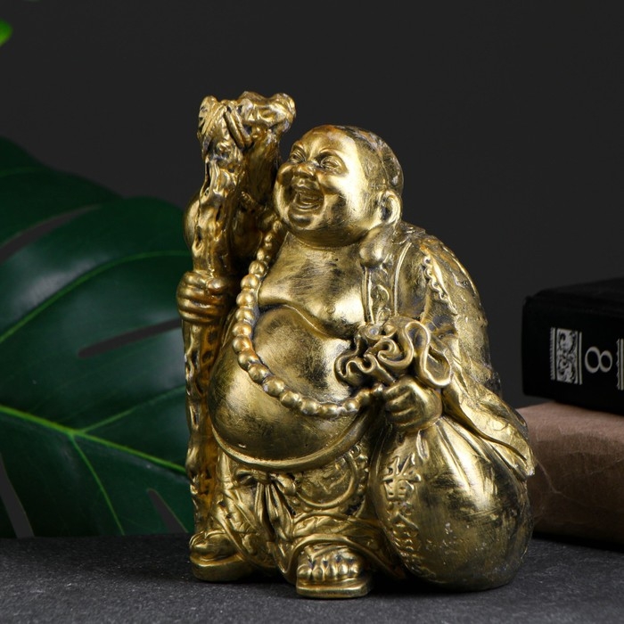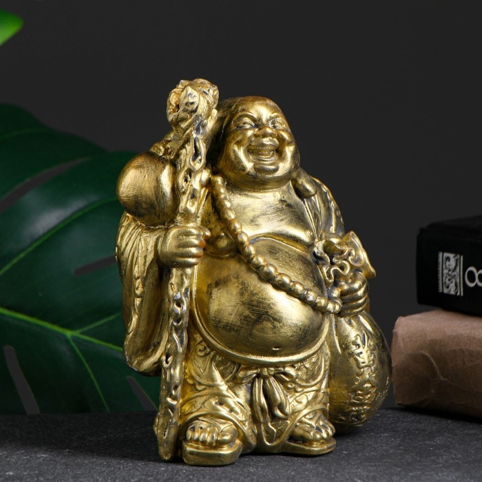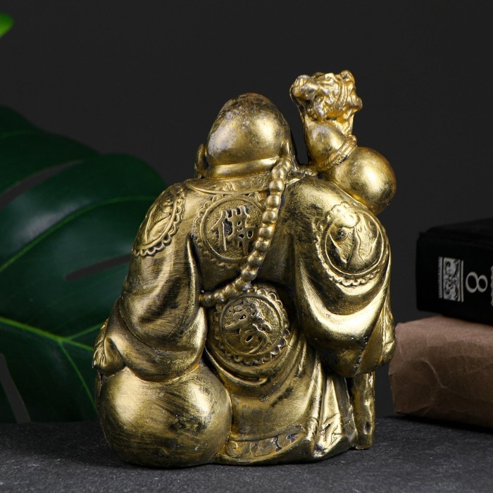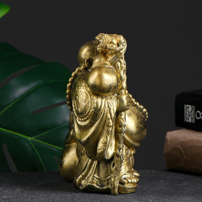 Фигура "Бог Хотей №1 с мешком и посохом" золото, 16х14х10см