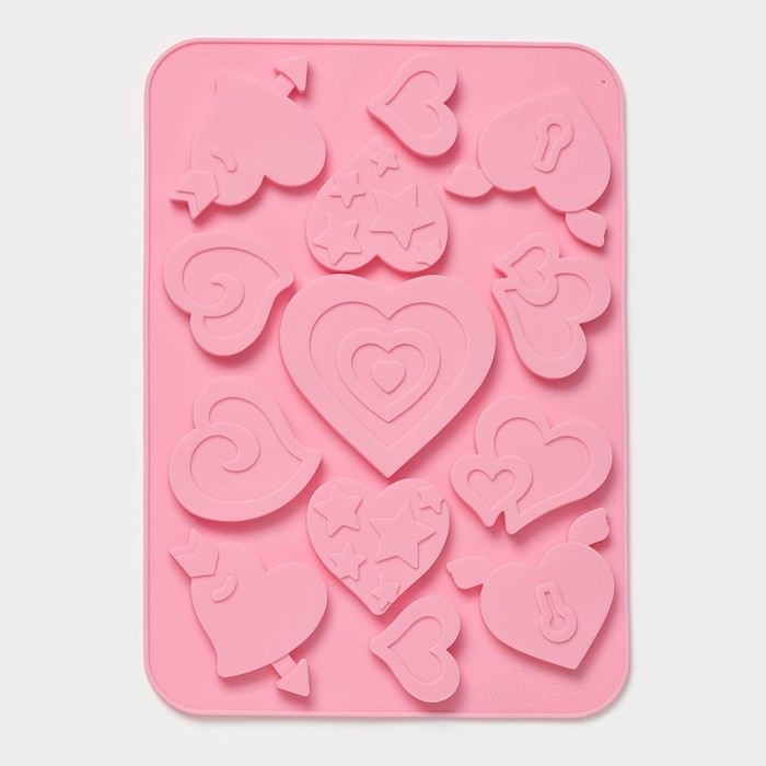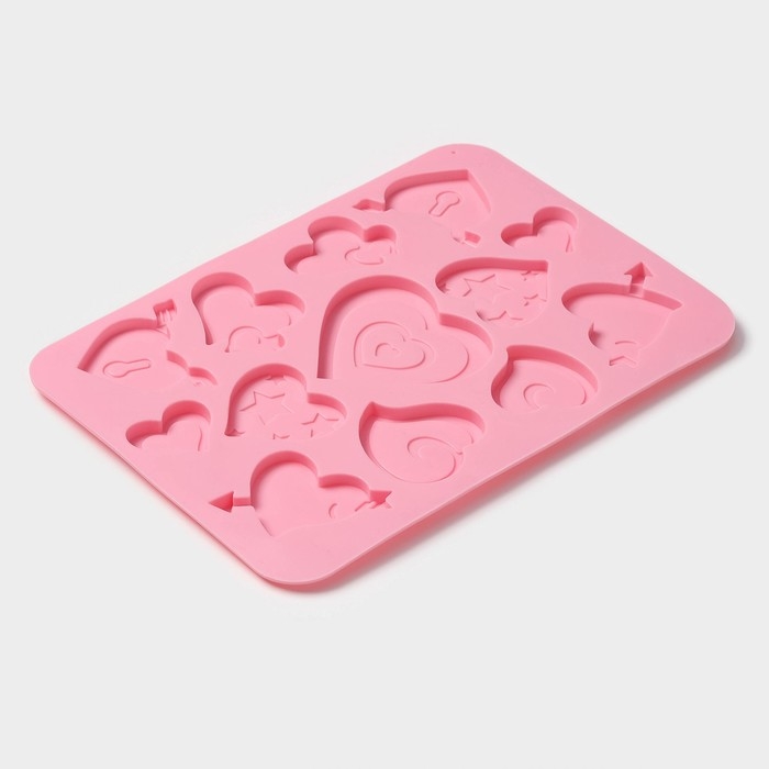 Форма для шоколада Доляна «Амуры», силикон, 13 ячеек, 23×16,5×0,5 см, цвет розовый