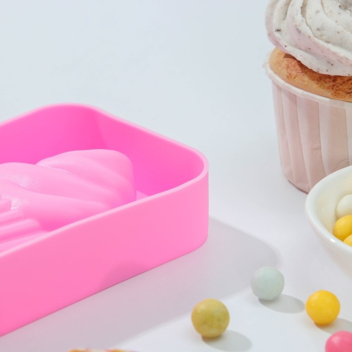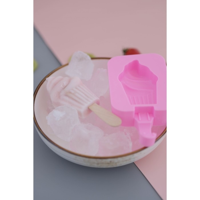 Форма для мороженого Доляна «Капкейк», силикон, 14×7,5×2,5 см, цвет розовый