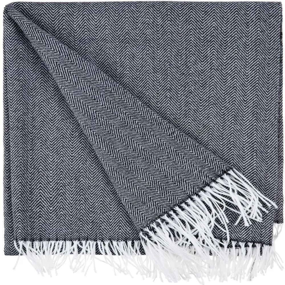 Классический рисунок «елочка» не слишком привлекает внимание, но в то же время добавляет изюминки. Смешанный состав пряжи продлевает срок службы и существенно облегчает уход за пледом.