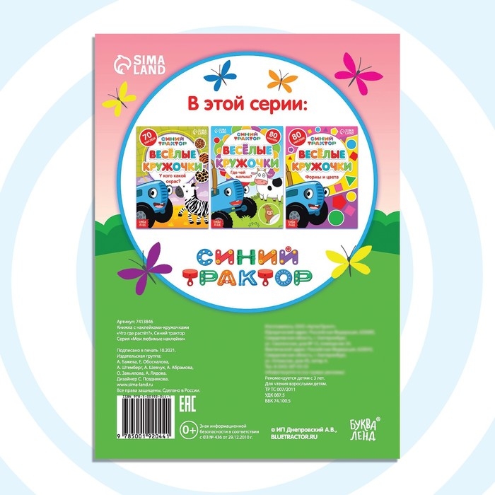 Внутри вы найдёте интересные задания. Выполняя их, малыш расширит кругозор. Также в книге есть забавные иллюстрации с любимыми героями мультфильма «Синий трактор».