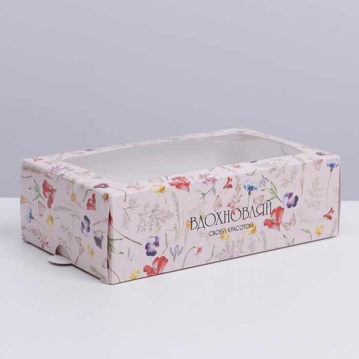 Коробка для макарун, кондитерская упаковка, «Вдохновляй» 18 х 10.5 х 5.5 см