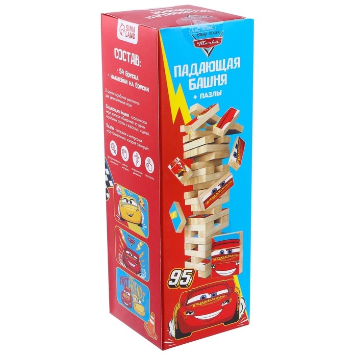 Падающая башня дженга, настольная игра "Дженга пати", с заданиями, 54 бруска, 30 х 8 см