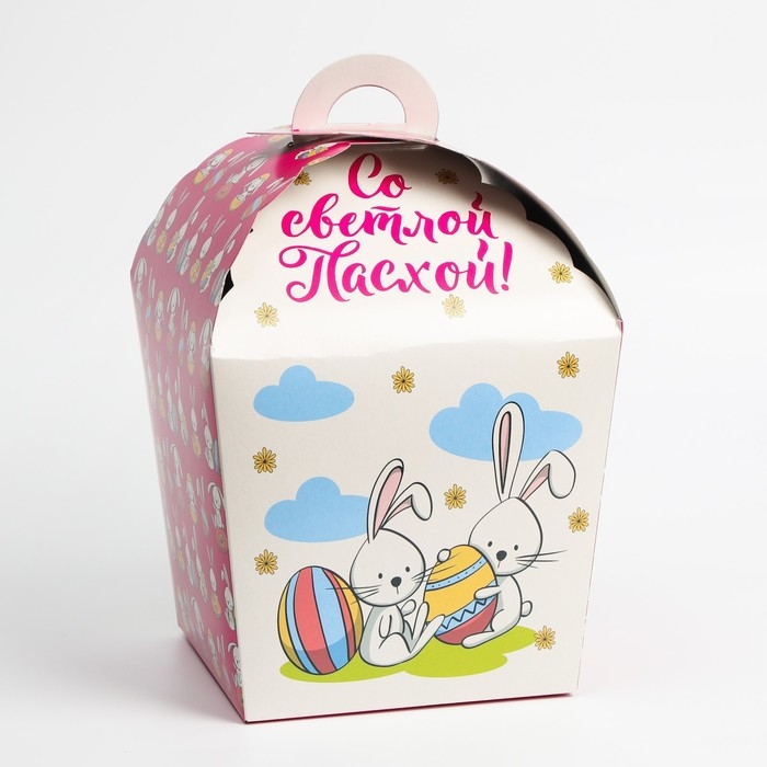 Пасхальная подарочная коробочка «Светлой Пасхи!», кролики, ромашки, 15×15×18 см