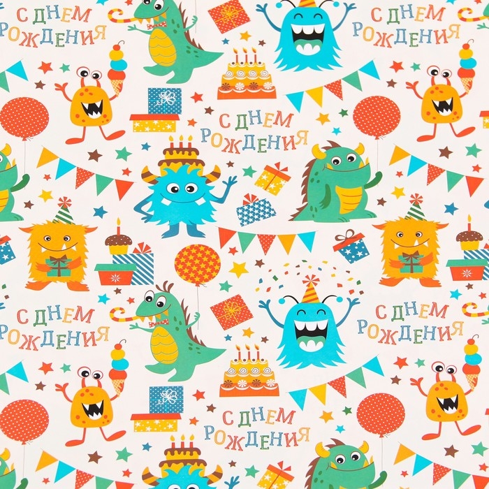 Бумага упаковочная глянцевая «Динозаврик», 70 × 100 см , 1 шт.