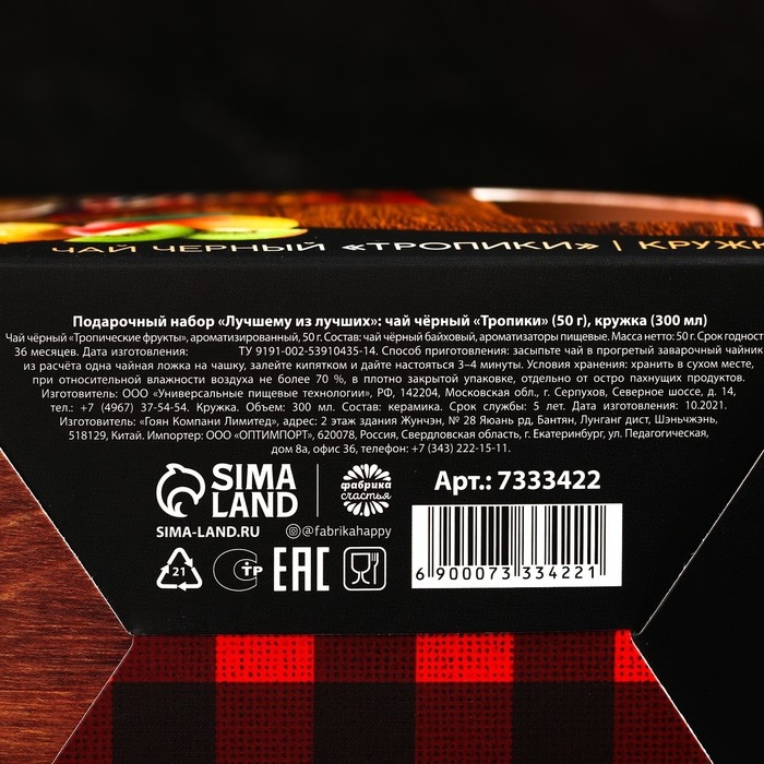 Подарочный набор «Лучшему из лучших»: чай чёрный «тропики» 50 г., кружка 300 мл.