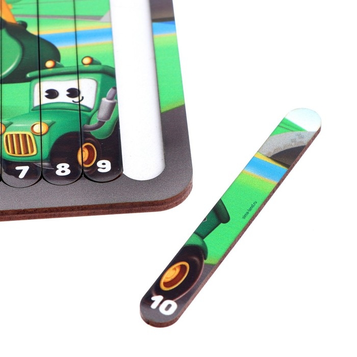 Предложите малышу собрать картинку, посчитать палочки. Затем можно перепутать палочки местами и попросить ребёнка исправить ваши ошибки ( малыш будет запоминать числовой ряд от 1 до 10 и наоборот). Можете убрать некоторые палочки, оставив пустые места, а малыш скажет, какого элемента не хватает, а позже - какой цифры.