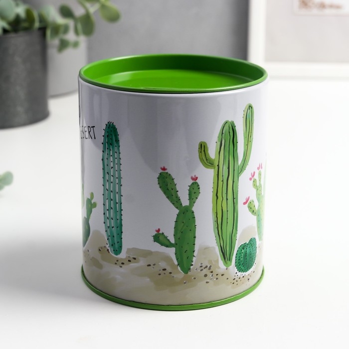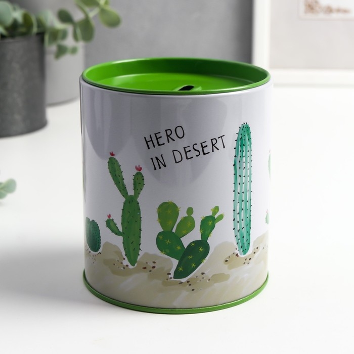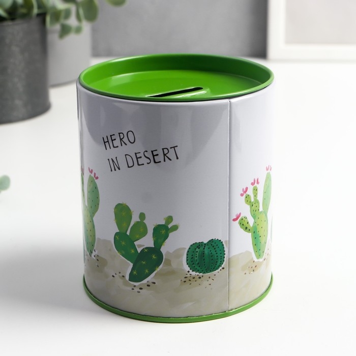 Копилка металл "Герой пустыни" бело-зелёный 9х9х10 см