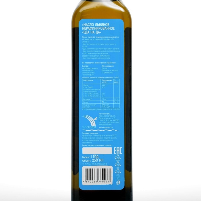 Состав: нерафинированное льняное масло, антиокислитель «селенопиран».