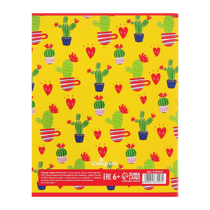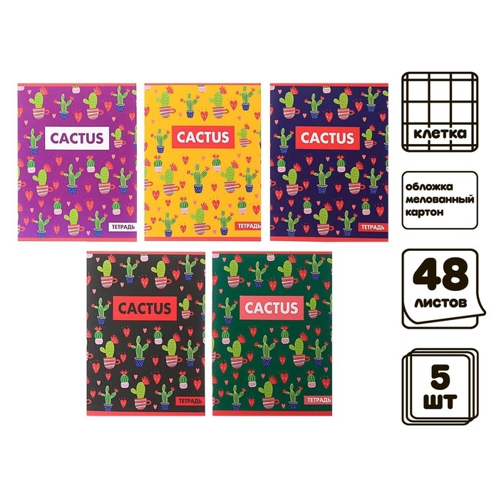 Комплект тетрадей из 5 штук, 48 листов в клетку Calligrata "Кактус", обложка мелованный картон, блок офсет