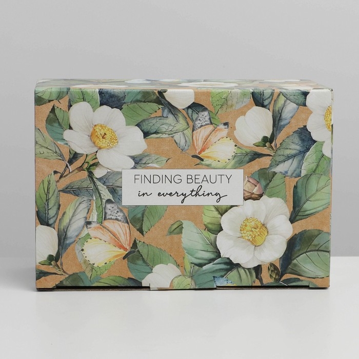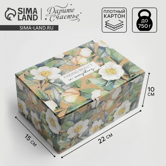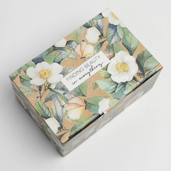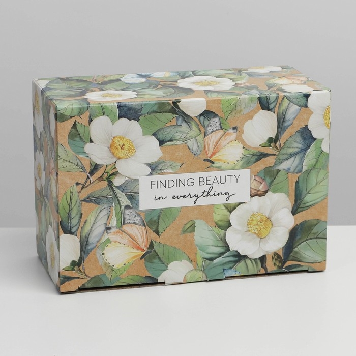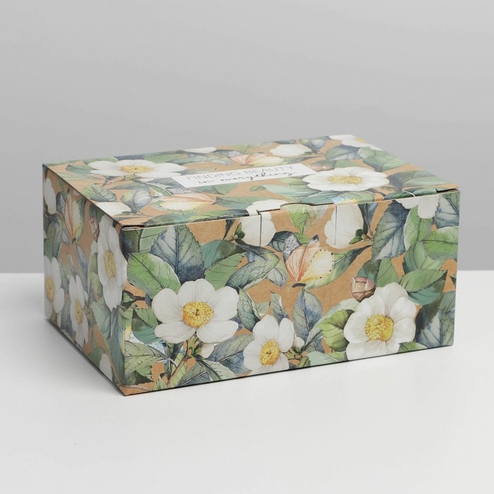Коробка‒пенал, упаковка подарочная, «Цветы», 22 х 15 х 10 см
