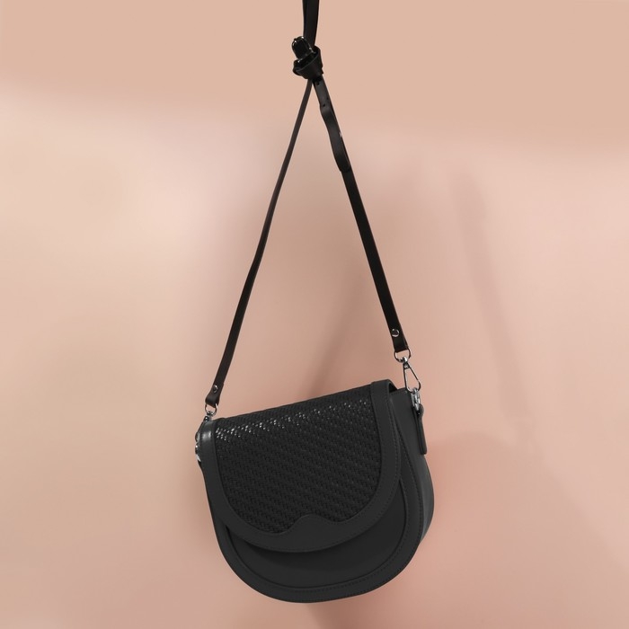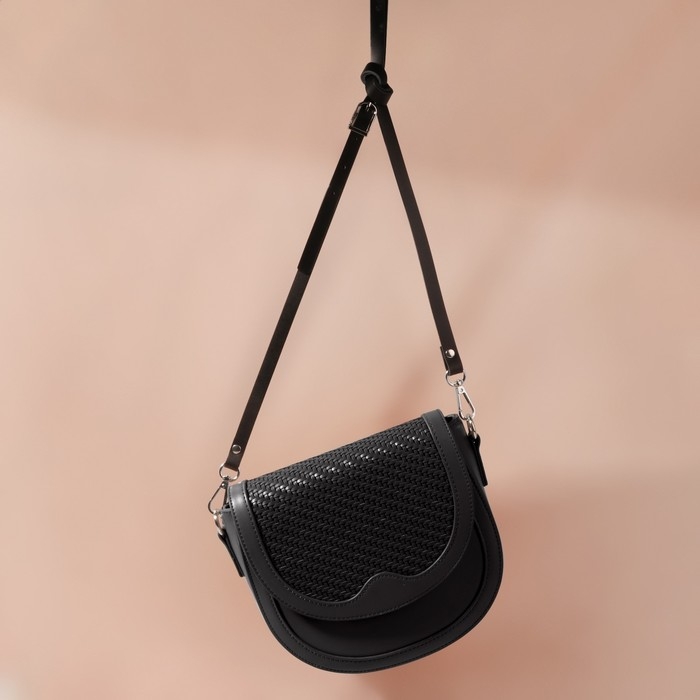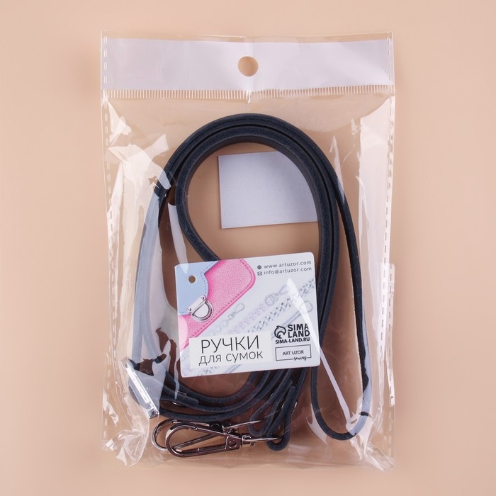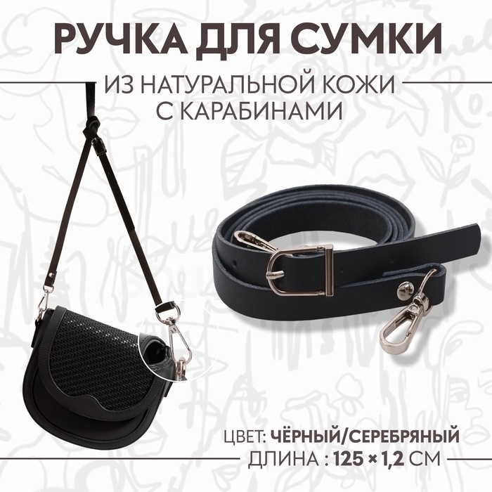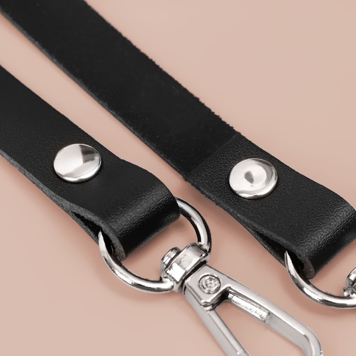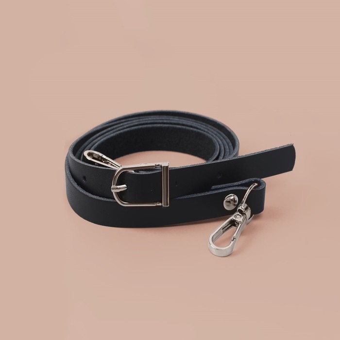 Ручка для сумки из натуральной кожи, с карабинами, 125 × 1,2 см, цвет чёрный