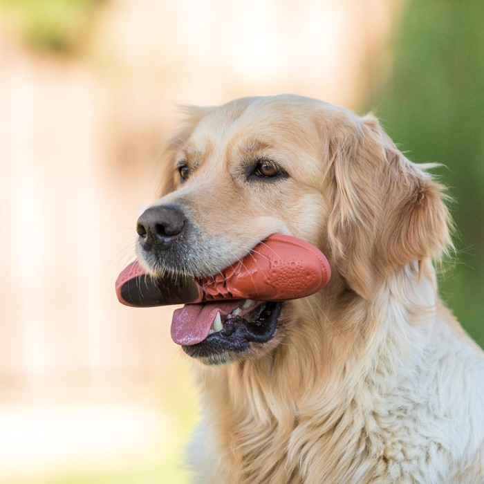 Игрушка изготовлена из безопасного материала и не предназначена для разгрызания. Во время игр виниловые игрушки можно жевать, благодаря этому они массируют дёсны и отчищают зубы собаки от налёта. Таким образом во время игр совмещается приятное с полезным.