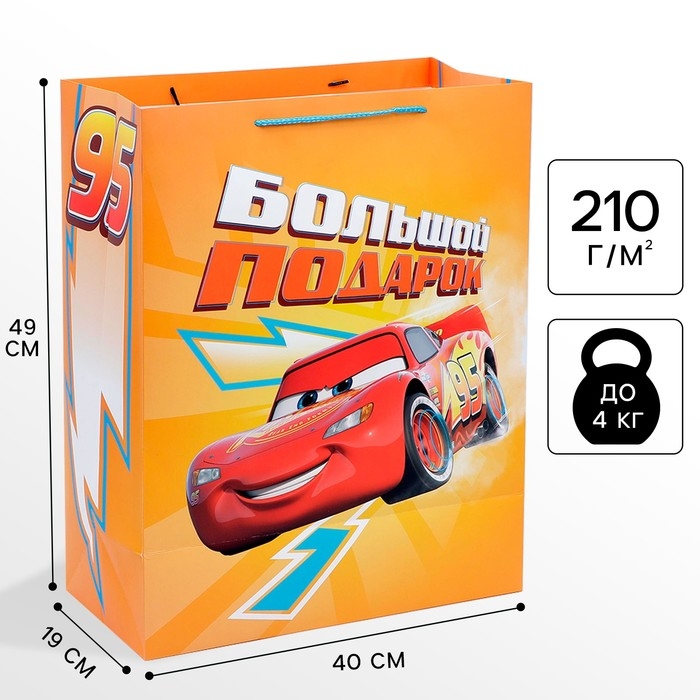 Пакет подарочный "Большой подарок" 40х49х19 см, упаковка, Тачки